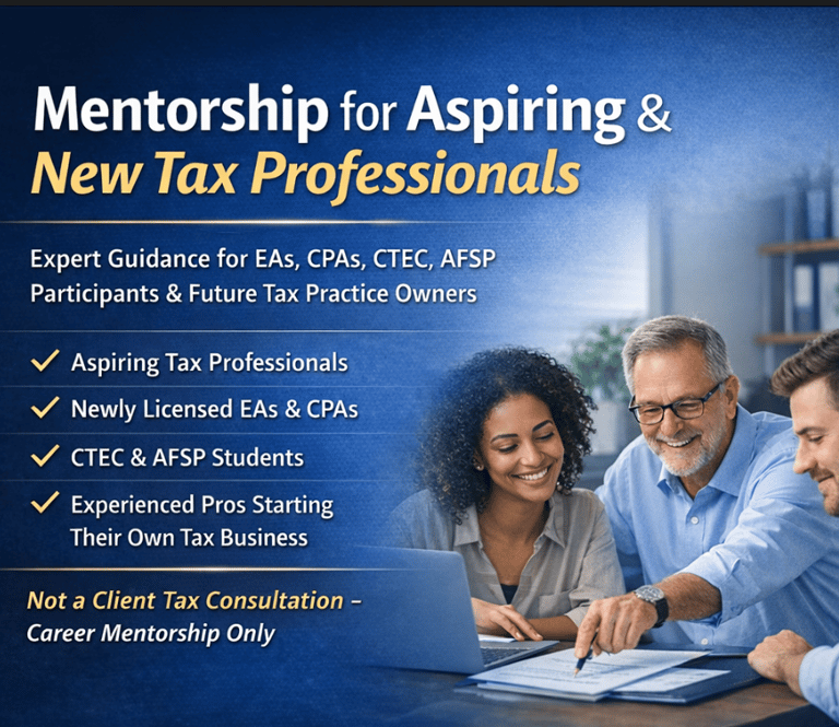 ✔ Newly licensed Enrolled Agents (EAs) and CPAs seeking guidance in real-world practice.